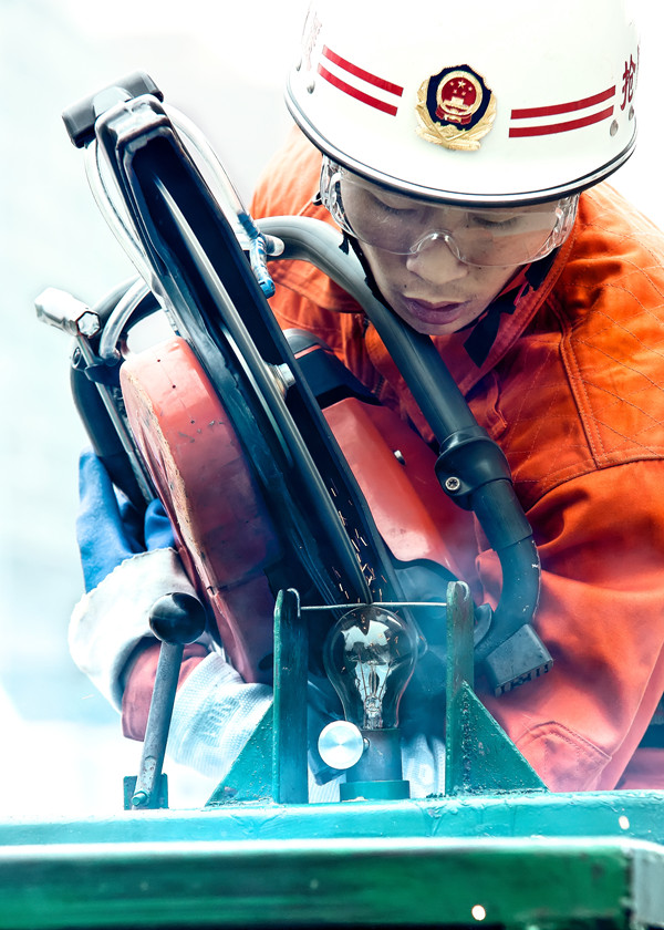 “忆党恩 颂祖国”消防主题摄影展优秀奖作品《毫米级精准切割》,摄影:何荣裕...