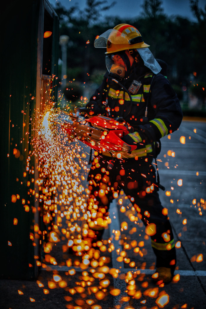 “忆党恩 颂祖国”消防主题摄影展优秀奖作品《青春的火花》,摄影:毕西洋...