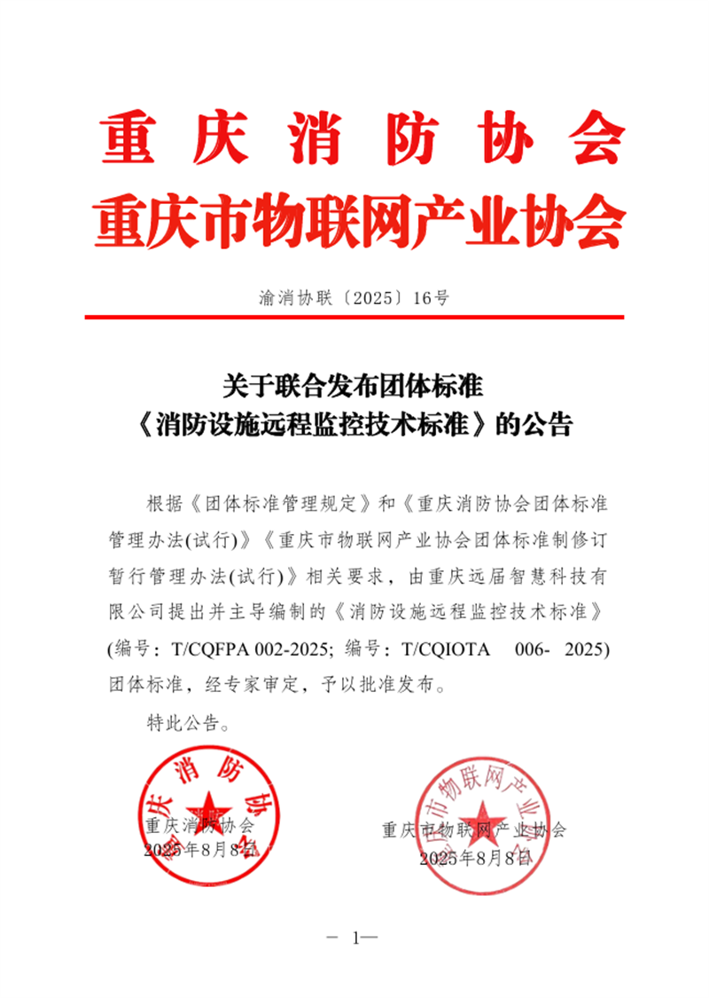 关于联合发布团体标准《消防设施远程监控技术标准》的公告